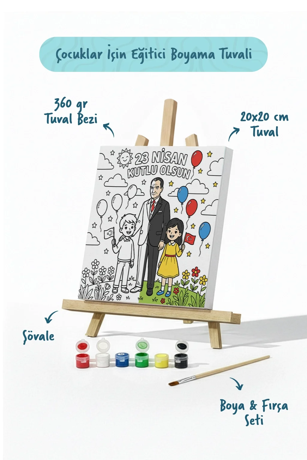23 Nisan Atatürk ve Çocuklar Temalı Boyama Tuvali – Şövaleli Boya Seti 20x20