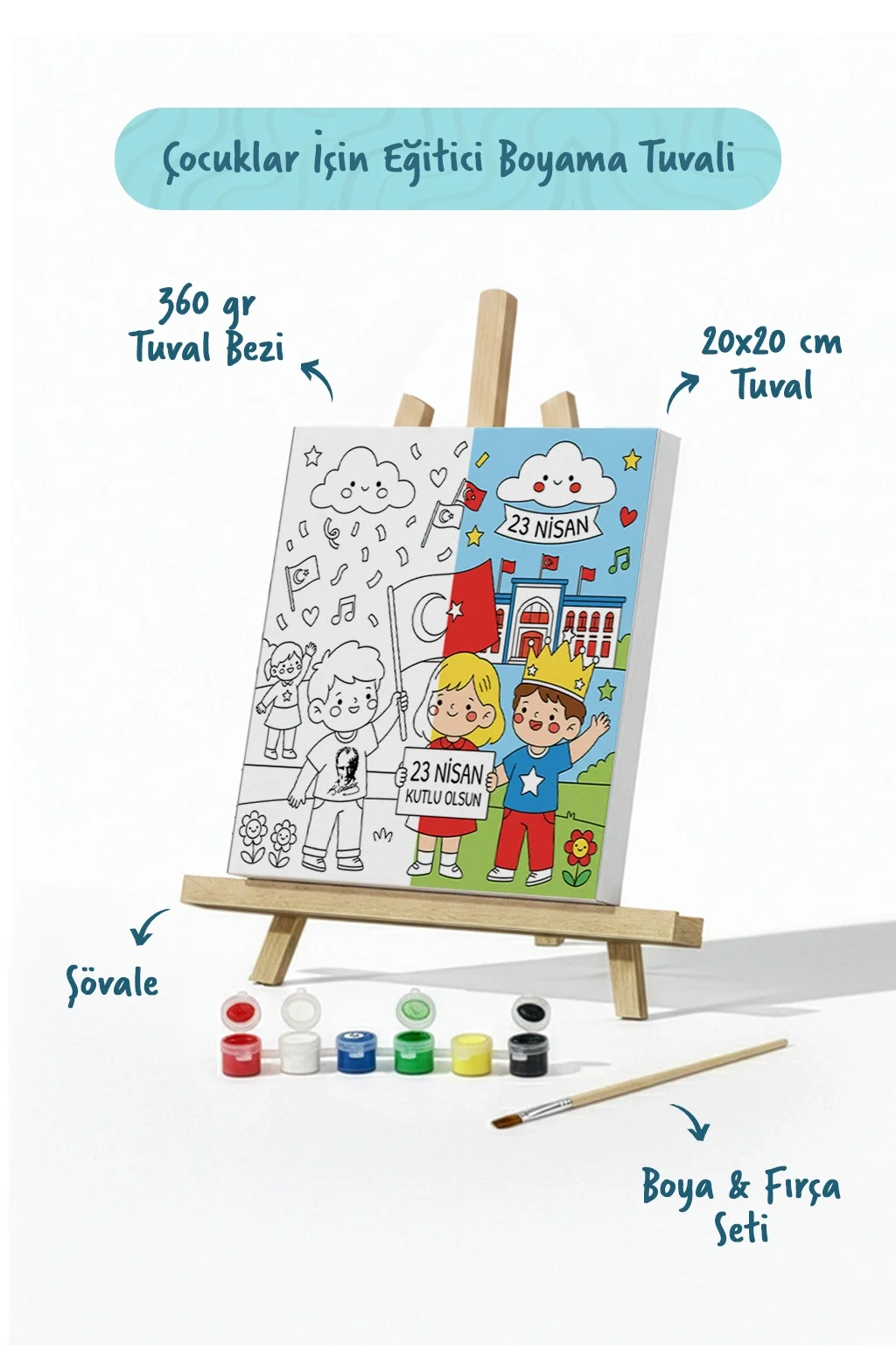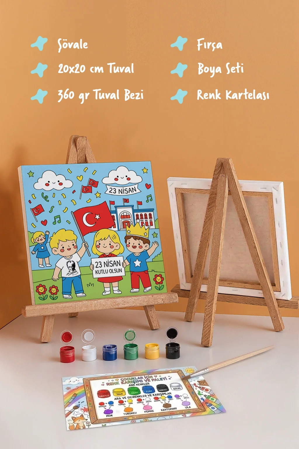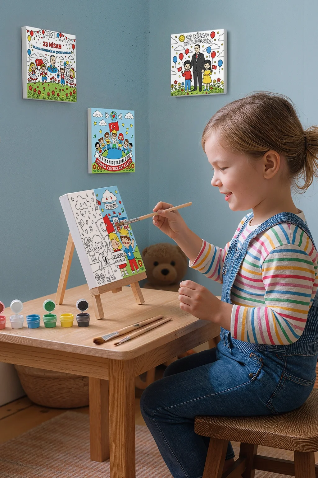 23 Nisan Temalı Çocuk Boyama Tuvali – Şövaleli Boya Seti 20x20