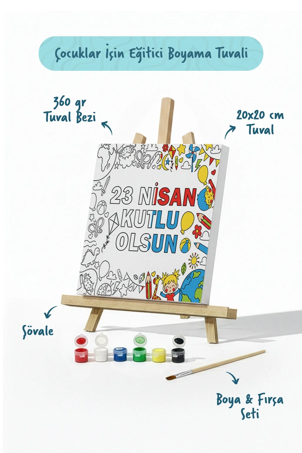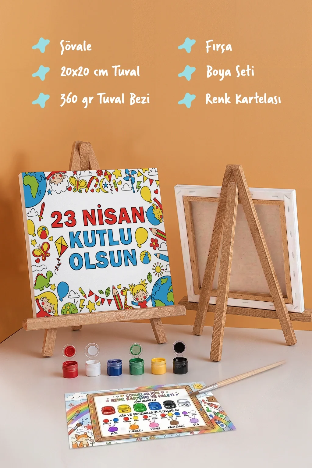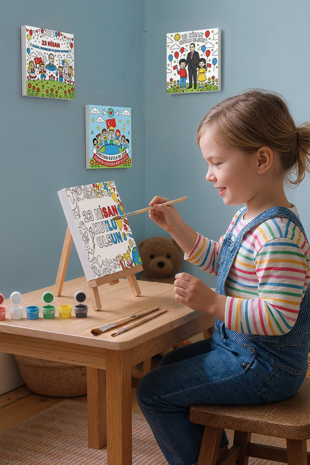23 Nisan Yazılı Eğitici Boyama Tuvali – Şövaleli Boya Seti 20x20