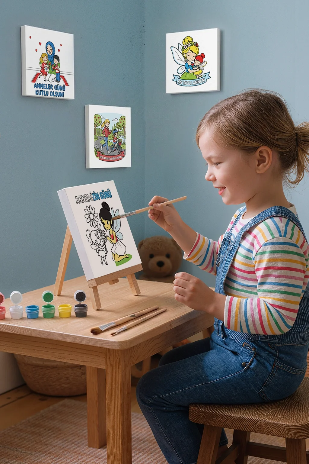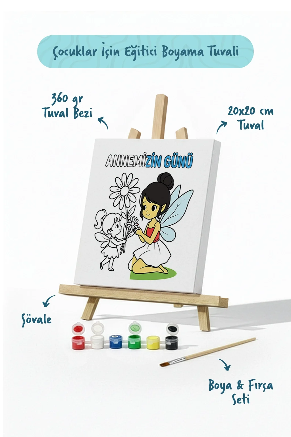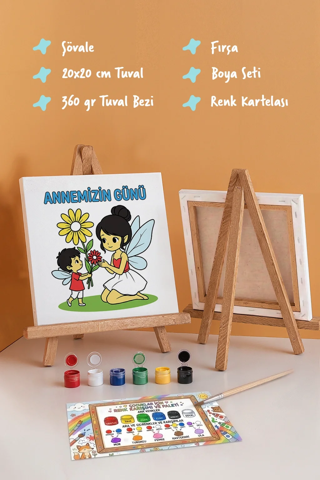 Annemizin Günü Temalı Boyama Tuvali Şövaleli Boya ve Fırça Seti 20x20 cm
