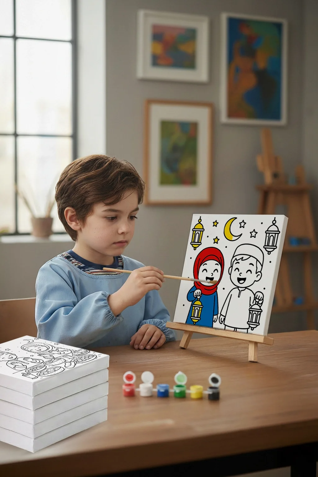 Çocuklara uygun içerik ve kullanım kolaylığı düşünülerek tasarlanan bu tuval boyama seti, rahat sürülen akrilik boyaları ve ideal boyuttaki fırçası sayesinde küçük yaş grupları için uygundur. Masa üstünde rahatça kullanılabilen şövale, çocuğun doğru duruşla boyama yapmasına yardımcı olur.