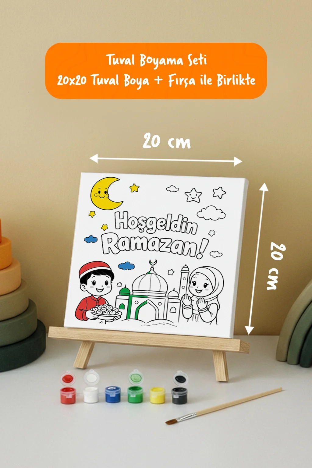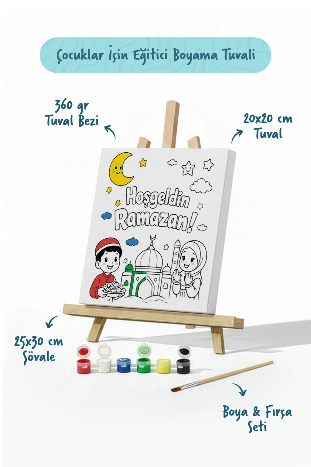 Minik ressamların hayal dünyasını renklendiren çocuk tuval boyama seti, sanatla tanışmak isteyen çocuklar için özel olarak hazırlanmıştır. 20x20 cm pamuklu tuval, canlı akrilik boyalar ve mini şövale ile gerçek bir ressam deneyimi sunar. Eğlenceli olduğu kadar eğitici olan bu set, çocukların yaratıcılığını desteklerken motor becerilerini de geliştirir.