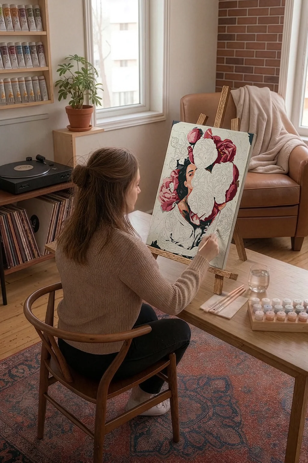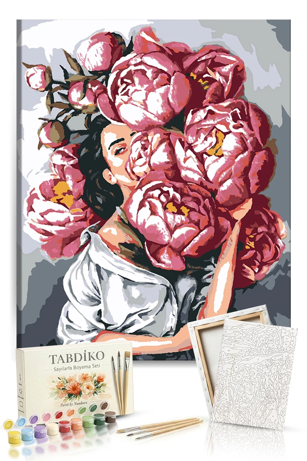 Sayılarla Boyama Seti 40 x 50 cm Tuval Şasesine Gerili Çiçekli Kadın