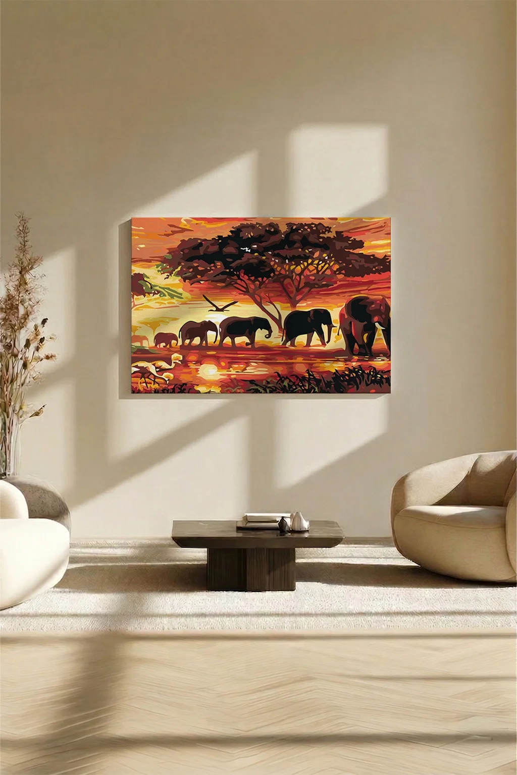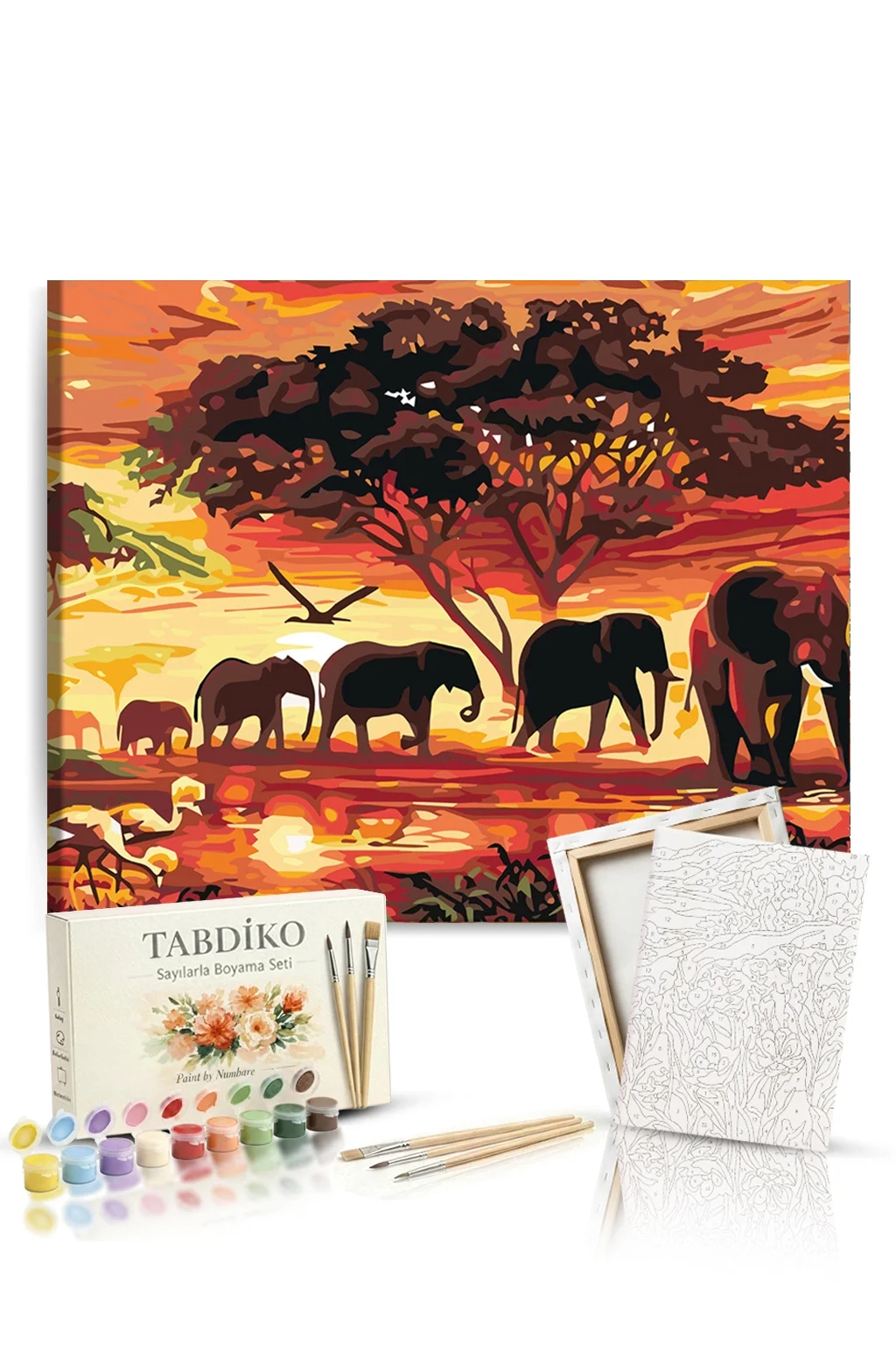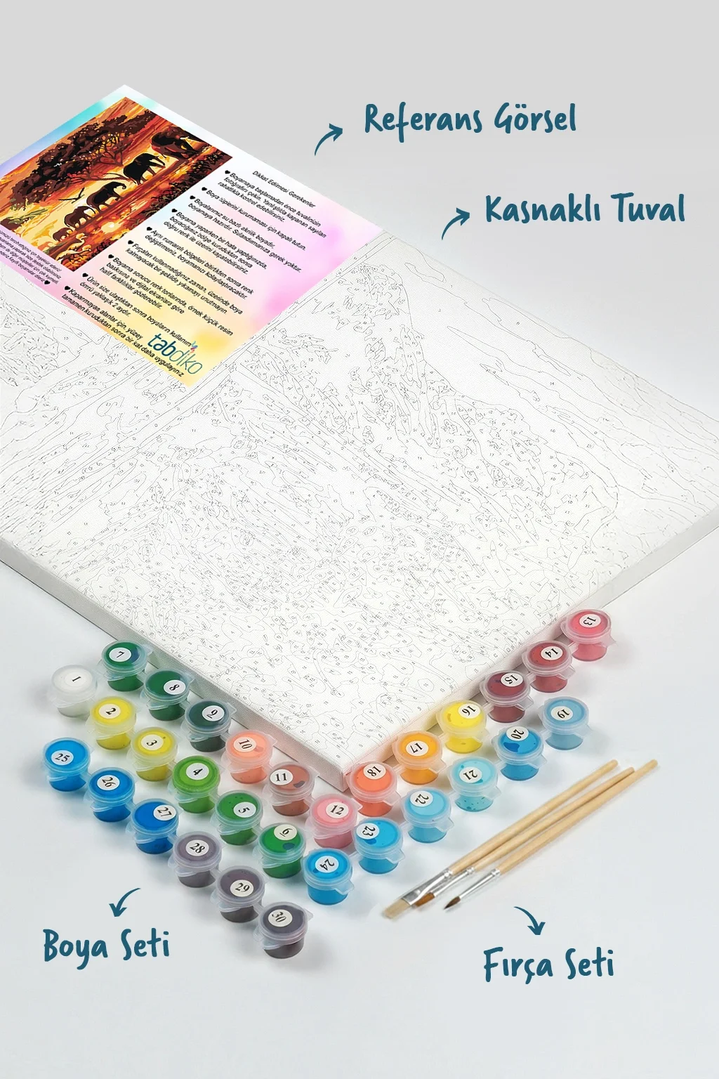 Sayılarla Boyama Hobi Seti Tuval 40x50 cm Tuval Şasesine Gerili Filler
