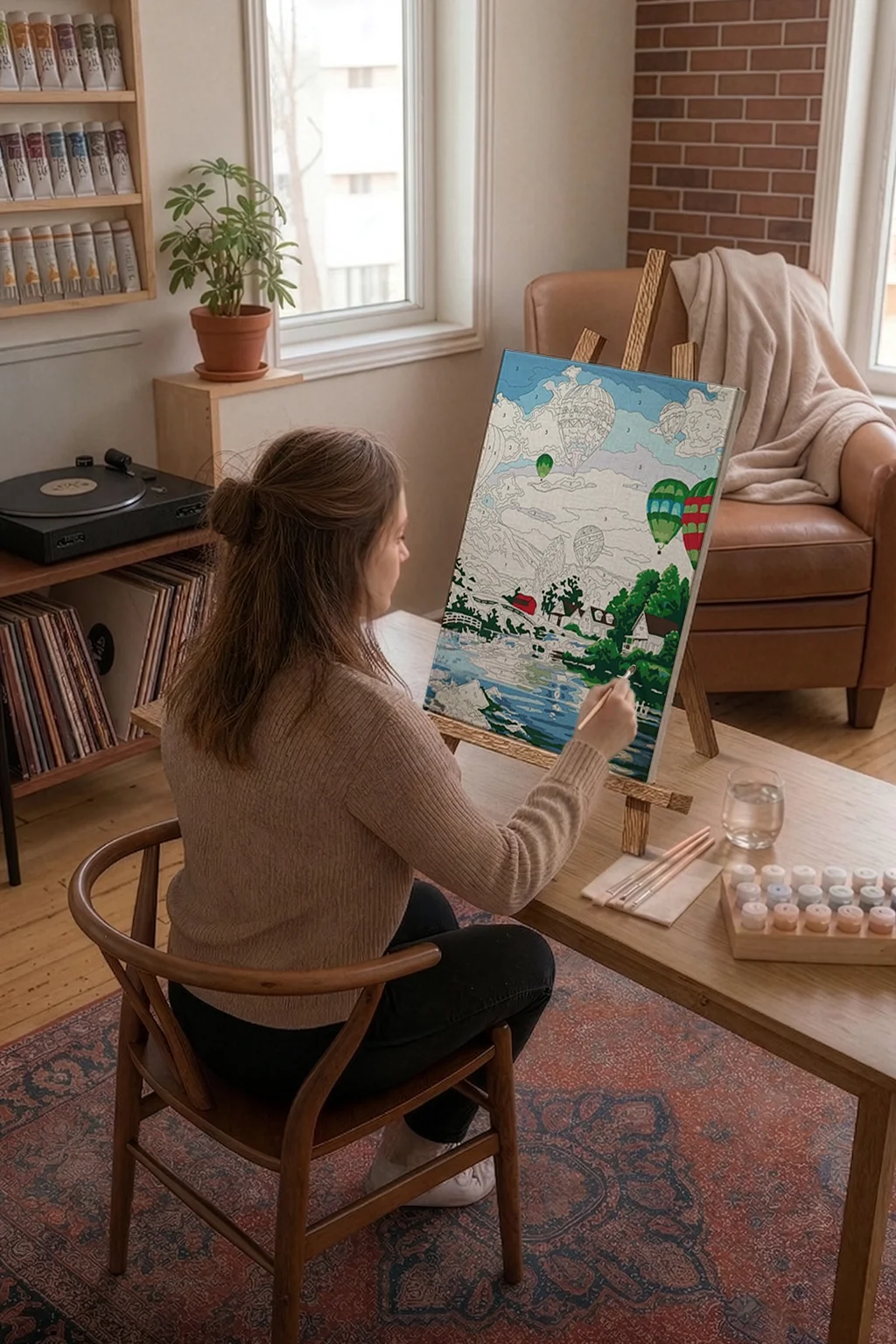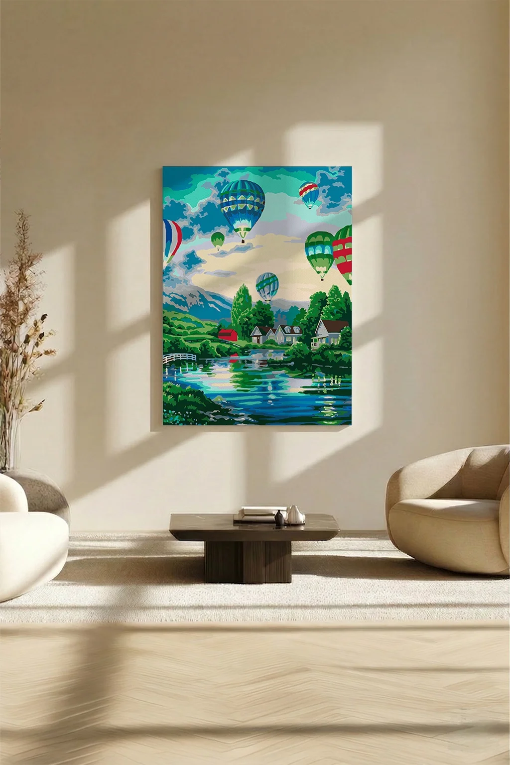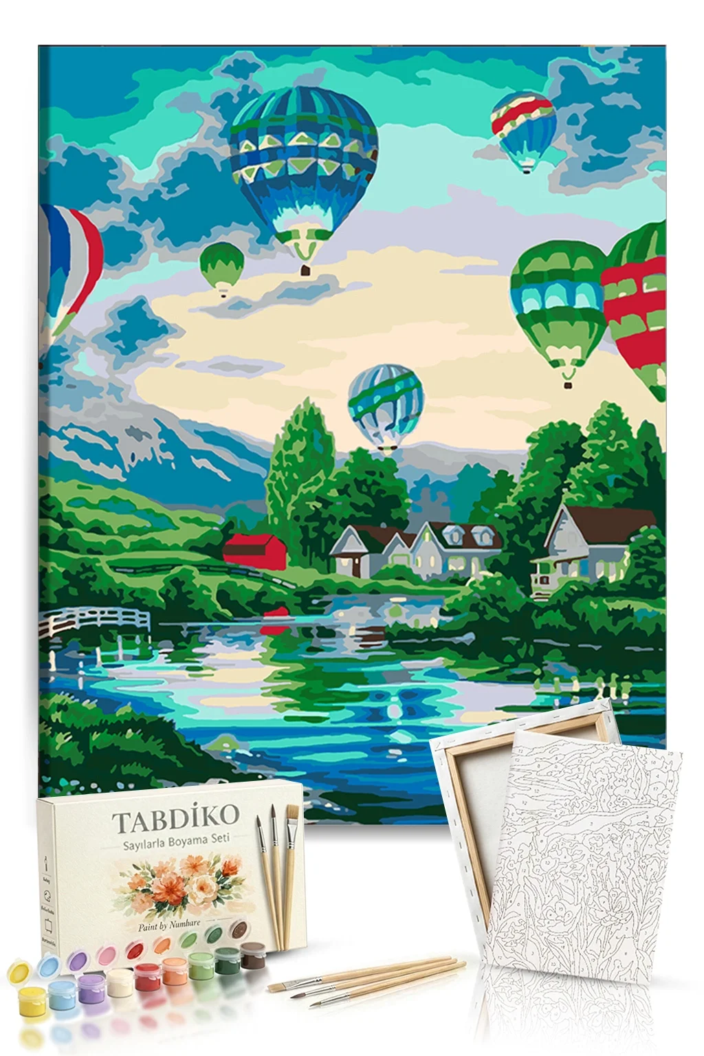 Sayılarla Boyama Seti 40 x 50 cm Tuval Şasesine Gerili Uçan Balonlar