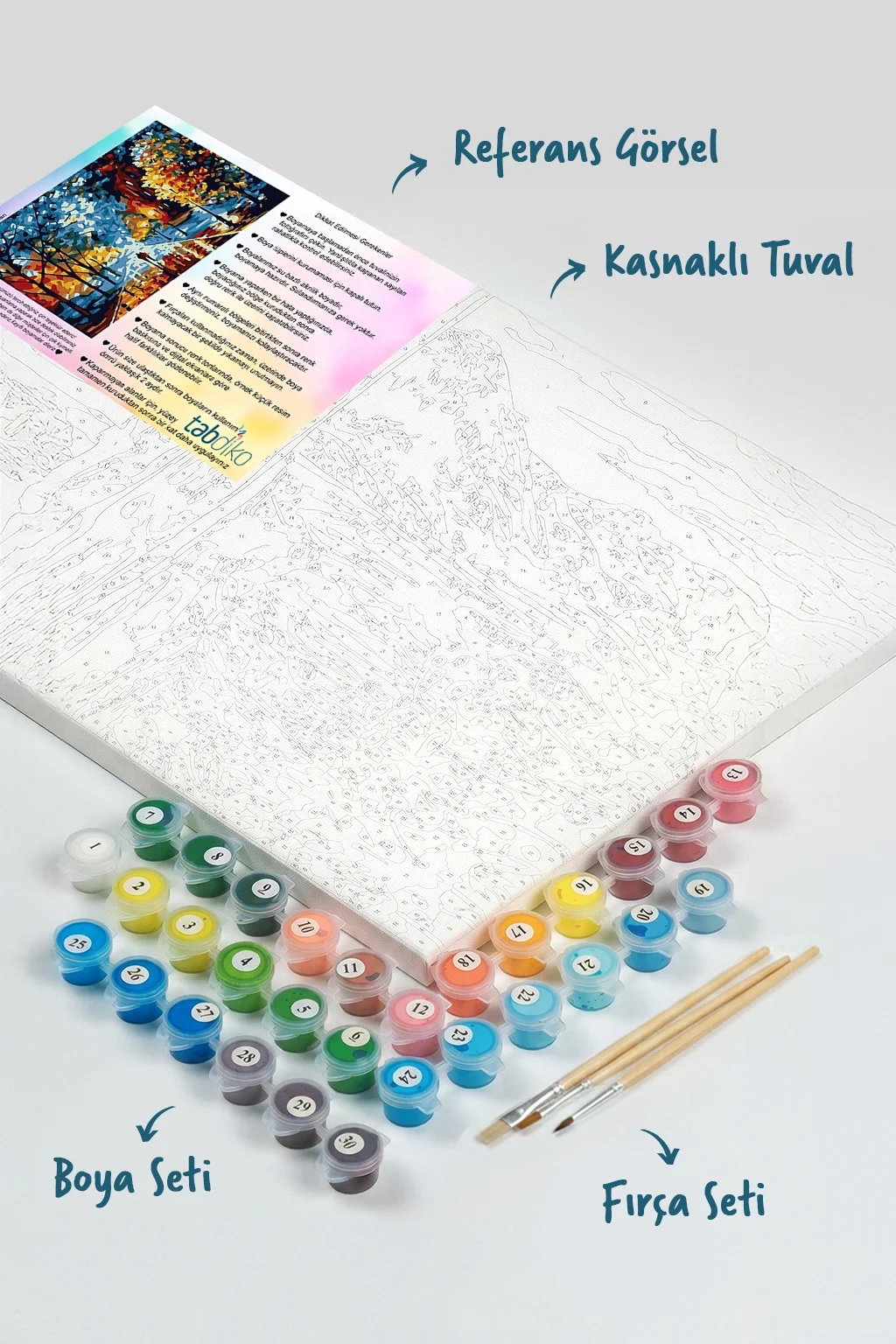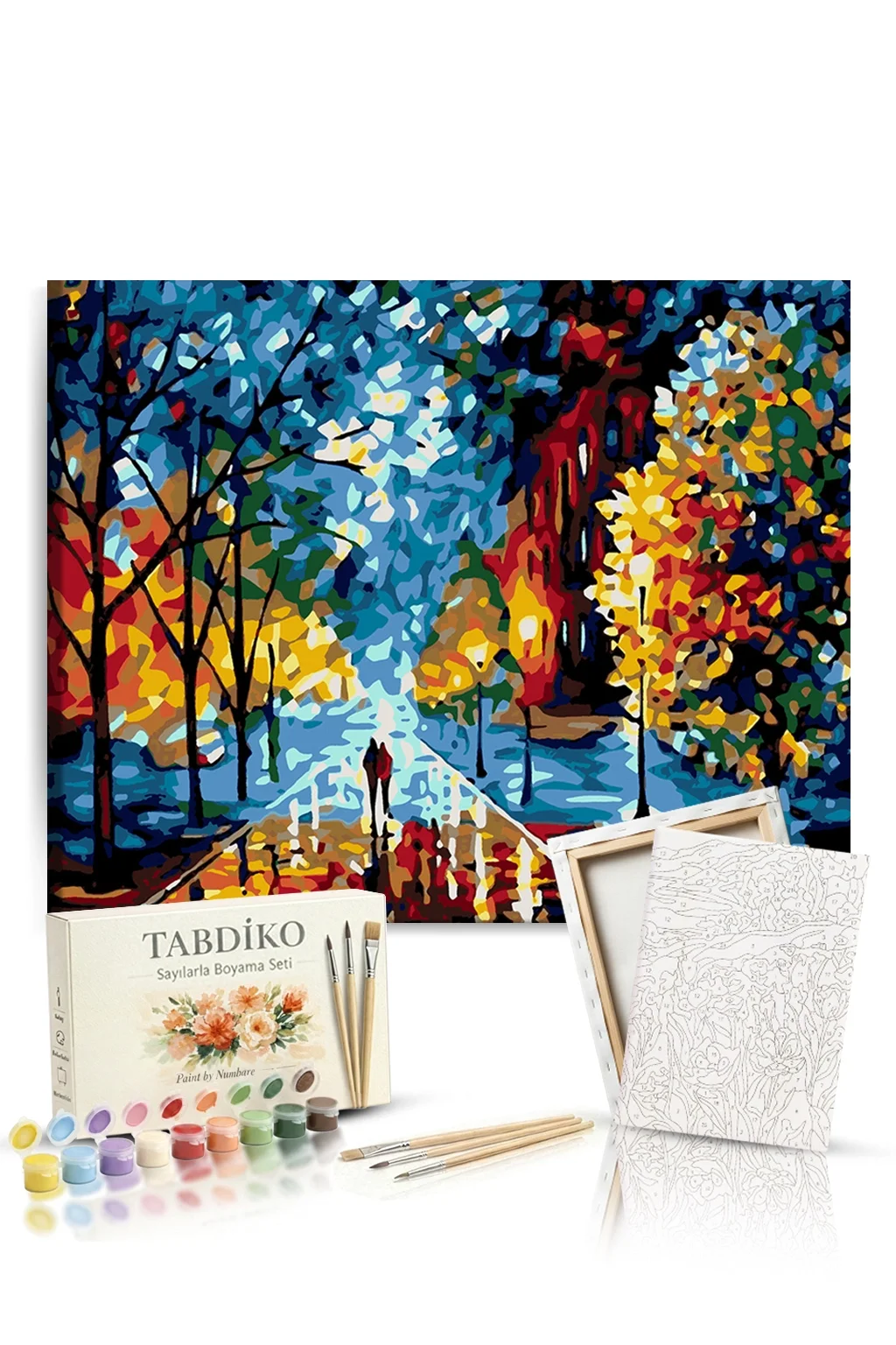 Tuval üzerinde boyamaya hazır numaralı bölgeleri, uygun numaralı boyalar ile boyayarak kusursuz bir tablo meydana getirebilirsiniz. Sayılarla Boyama setimize başladığınızda, kendinizi profesyonel bir ressam gibi hissedeceksiniz. Sayılarla boyama setleri, resme yeni başlayanlar için mükemmel bir ilk adım olacaktır. Boyama setimiz ile temel resim becerilerini kazanmış ve başarı duygusunu tatmış olacaksınız. Bitmiş tablonuzu dilerseniz evinizin en güzel köşesine asabilirsiniz. Sevdiklerinizle ya da çocuklarınızla keyifli ve kaliteli vakit geçirmek için sizler de Tabdiko ailesine katılın, bu eşsiz boyama zevkinin tadına varın. 100'lerce farklı tablo modeline mağazamızdan erişebilirsiniz. Görmekte olduğunuz renkler, gerçek renk tonlarına en yakın olacak şekilde seçilmiştir. Ancak, referans baskılarına ya da bilgisayar/tablet/akıllı telefon ekran ayarlarına göre renk tonlarında hafif farklılıklar gözlemlenebilir. Her yaştan insanı adeta birer amatör ressama dönüştüren Numaralarla boyama seti ile, ister duvarlarınızı süsleyen harika tablolar yaratabilir isterseniz de sevdiklerinize özel ve anlamlı bu armağanı sunabilirsiniz…