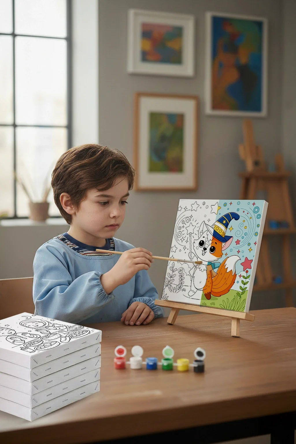 Sihirbaz Tilki Temalı Çocuk Boyama Tuvali – Şövaleli Eğitici Boyama Seti 20x20 cm
